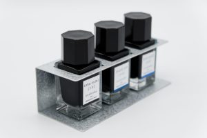 ぐい呑みを3つ並べられるトレー、「ぐい呑みトレー」。アルミ製です。